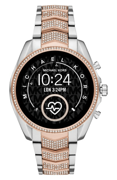 A chronograph mechanism lends functionality, while the roman numeral . Get special offers & fast delivery options with every . Chronograph detailing and roman numeral . The minute you land your eyes at this women's chronograph watch from the house of michael kors, you'll want to own it. Part of the jetset collection, the ladies michael kors bradshaw chronograph watch impresses with its bold, gold looks.